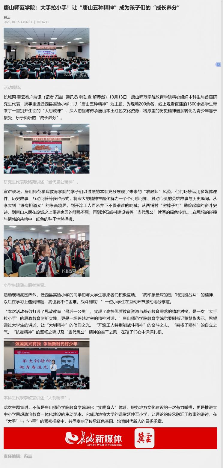 《冀云》—永利官网:大手拉小手!让“唐山五种精神”成为孩子们的“成长养分”