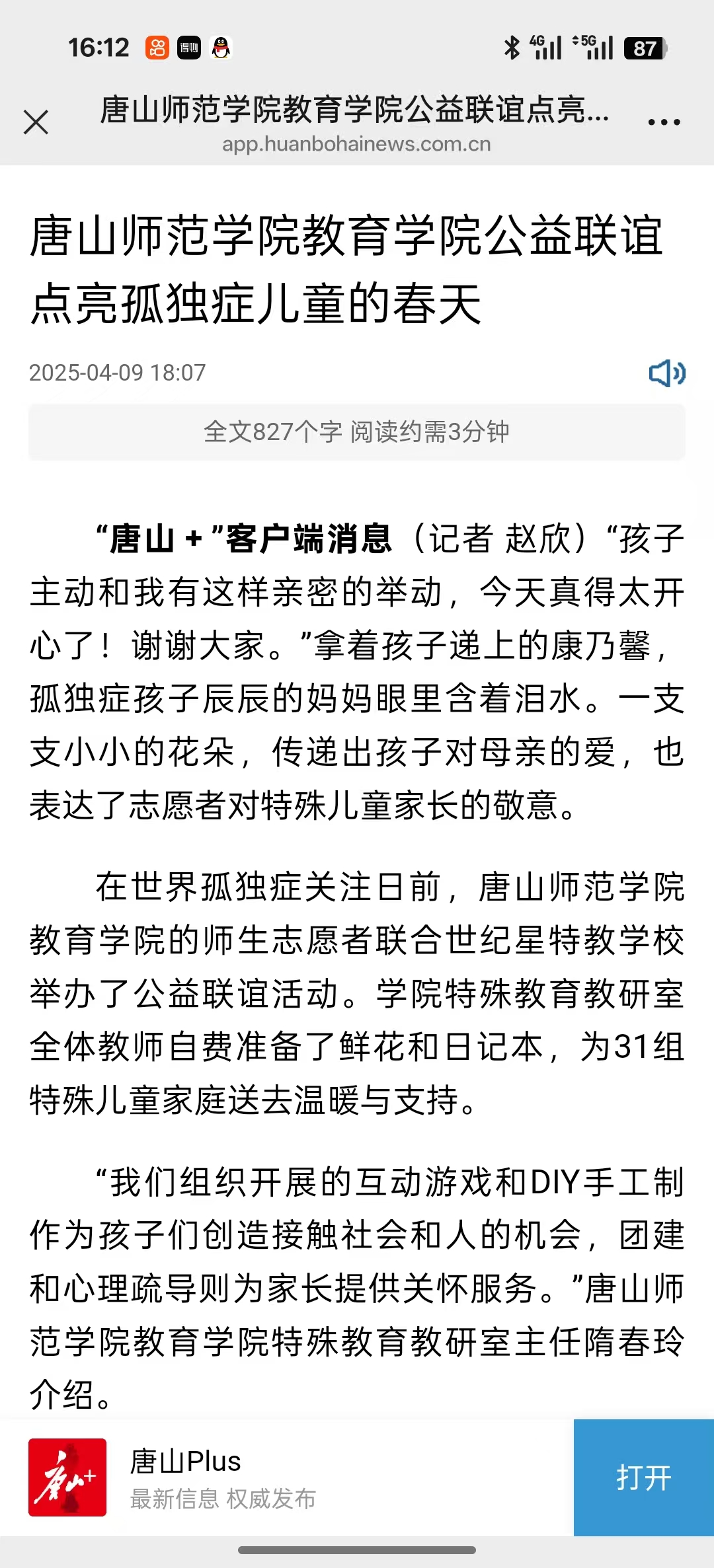 《唐山plus》-yl6776永利集团公益联谊点亮孤独症儿童的春天