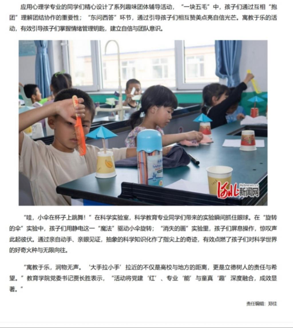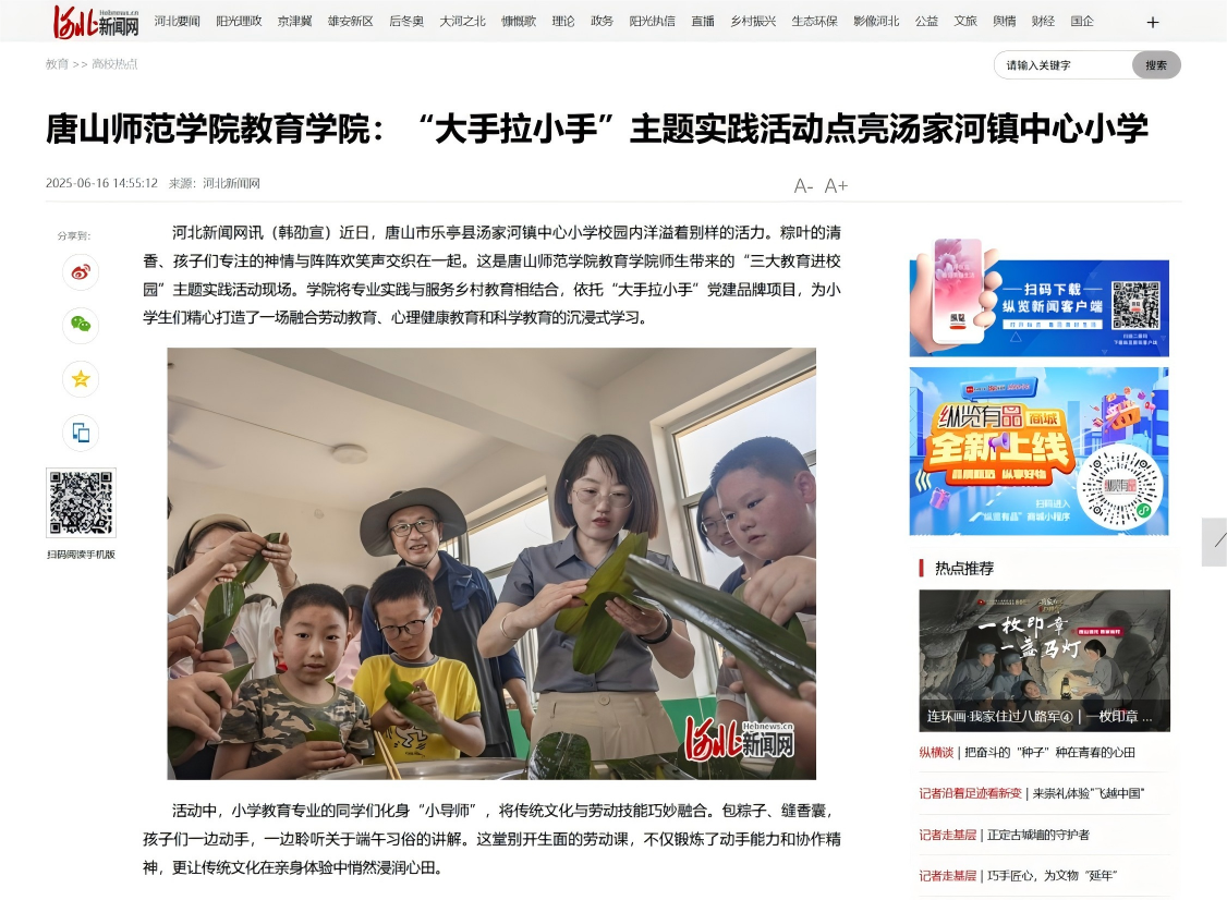 《河北新闻网》—yl6776永利集团:“大手拉小手”主题实践活动点亮汤家河镇中心小学