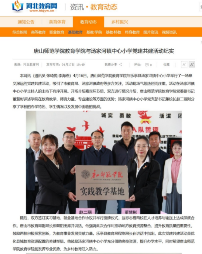 《河北教育网》——yl6776永利集团与汤家河镇中心小学党建共建活动纪实