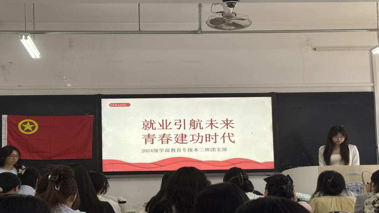 随后,各团支部结合专业特色积极响应,开展多样化就业引导活动。2024级学前教育专接本二班团支部举办“学前教育就业场景模拟”主题活动,以幼儿园教师招聘面试为背景,设置“结构化问答+试讲展示+才艺考核”全真模拟环节。同学们分组设计符合幼儿认知特点的试讲教案,围绕“如何应对幼儿突发情绪问题”等高频面试问题展开演练,现场模拟幼儿园教师与家长沟通场景,在实践中提升求职应变能力。