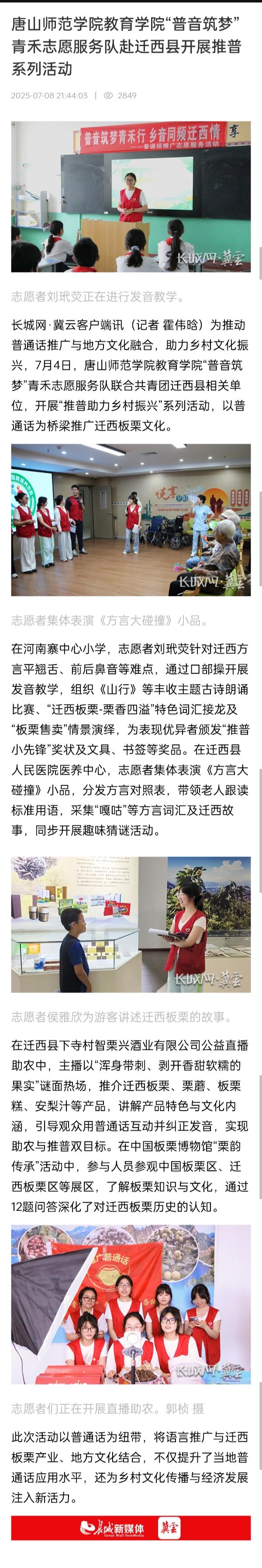 《冀云》——yl6776永利集团“普音筑梦”青禾志愿服务队赴迁西县开展推普系列活动