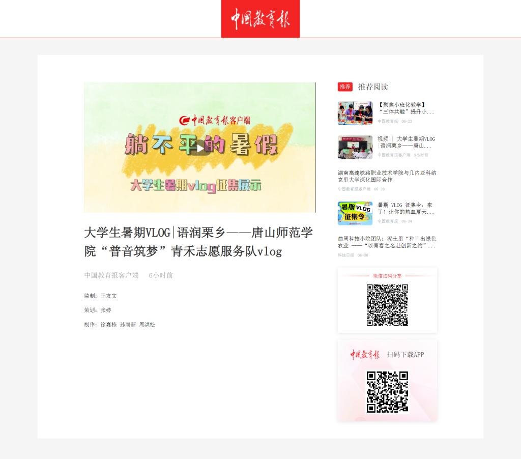《中国教育报》——老员工暑期VLOG|语润栗乡 永利官网“普音筑梦”青禾志愿服务队vlog