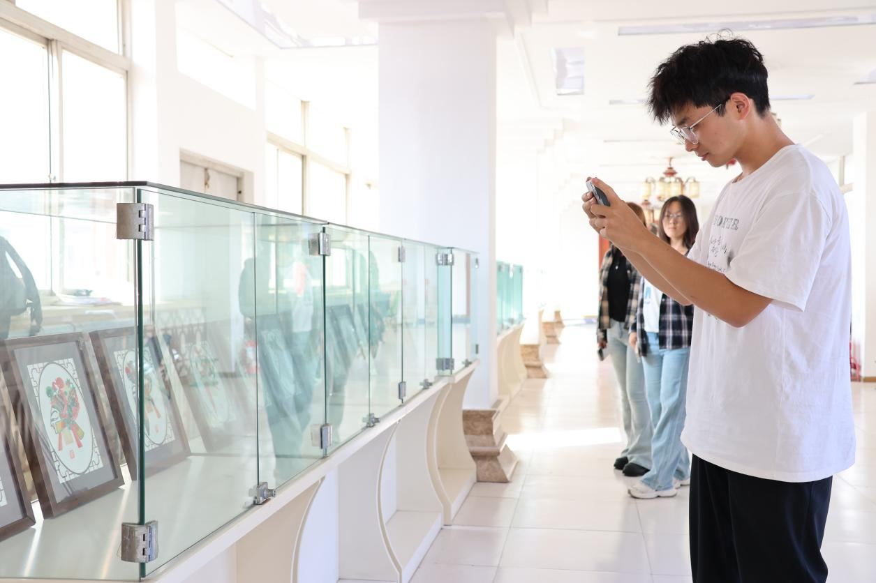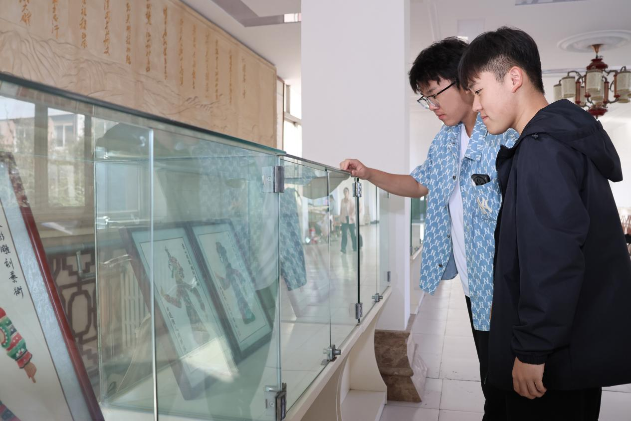 随后,在公司党委书记贾长胜与周馆长的领下,师生们移步连廊近距离参观了皮影展品。周馆长逐一对展品的题材来源艺术风格及文化寓意进行解读。从经典剧目角色到现代创新设计,每一件皮影作品都成了鲜活的文化教材,让师生在近距离观赏中深化了对非遗艺术的认知。