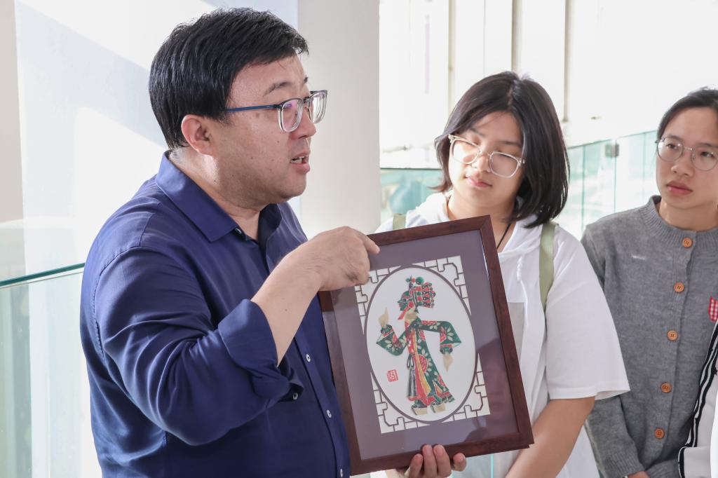 活动伊始,周学军馆长结合自身深耕皮影领域的实践经历,与师生展开深度交流。他从皮影的历史演变地域特色讲起,细致拆解其核心制作工艺,用生动的案例科普皮影在当代的创新应用,让在场师生不仅厘清了这门非遗艺术的发展脉络,更真切感知到了传统技艺背后的文化底蕴与匠人精神。